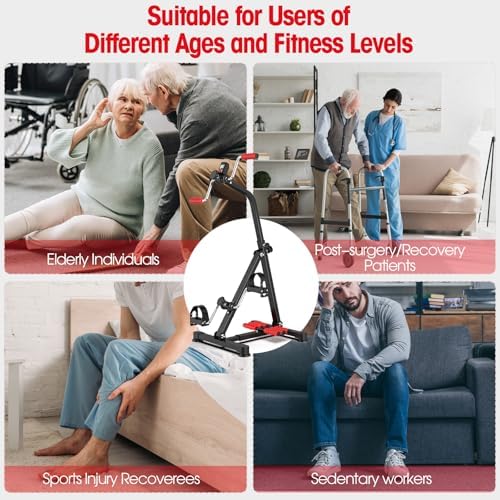 - 【Stable and Heavy-Duty Pedal Exerciser】This leg exerciser while sitting for seniors is crafted with rust-resistant steel tubes, supports up to 265 lbs, and features 4 suction cups for floor stability. Non-slip rubber pedals ensure safety during workouts. As an ideal fitness bike for arm exercises, it is perfect for stroke recovery therapy, leg strengthening, and knee rehabilitation. A must-have for seniors, it doubles as an arm exerciser and knee rehabilitation device for comprehensive recovery.