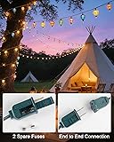 Colored Outdoor String Lights: The total length of the decorative patio string lights is 11 feet with 10 multicolor bulbs. The 10 light string light set adds a romantic touch to any space Perfect Decorations String Lights: This indoor decorative string lights emit warm light, heavy-duty flexible rubber strand design. Perfect lighting for indoor outdoor, patio, pergola, gazebo, garden, wedding party,bedroom for year-round enjoyment Water-resistant & Connectable: IP44 waterproof grade ensures that outdoor hanging string lights work on rainy days. End-to-end connections up to 20 strings, it can decorate a larger area UL Certified & Free Accessories: Our outdoor patio string lights UL listed for outdoor/indoor use. This summer outdoor patio lights has free fuses x 2 and replacement bulbs x 2. If it is damaged or you want it to become brighter after long time use, it can be replaced Safety Material: The weather-resistant plastic material bulbs and lampshades, water resistant sockets make that the garden string lights is more safety. Your family and friends can play carefree on the lawn or patio without worrying the hanging string lights
