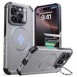 - ESR for iPhone 16 Pro Max Case with Stand, 23 ft Military-Grade Drop Protection Heavy Duty Magnetic Phone Case, Compatible with MagSafe Accessories, Cyber Series, Titanium