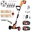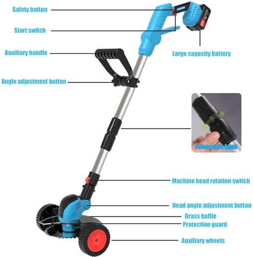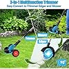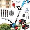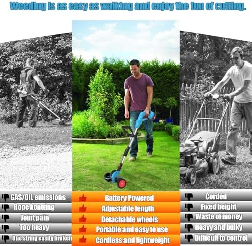 - 2025 UPGRADED ELECTRIC WEED WACKER: The cordless grass trimmer has been upgraded with smoother wheels, higher-strength blades and larger-capacity batteries.The multifunctional cordless electric weed wacker is versatile and can be used as grass trimmer, edger, lawn mower, easy for different cutting jobs, not limited by wires, you can mow anywhere. Weeding is as easy as walking and enjoy the fun of cutting.(fully charged before first use)