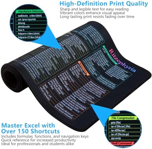 Linux Cheat Sheet Mouse Pad XL – Extra Large Linux Desk Mat with 200+ Commands – Waterproof Linux Shortcut Mouse Pad for Office, Coding, Gaming – 31.5" x 11.8"