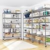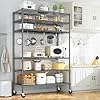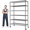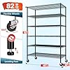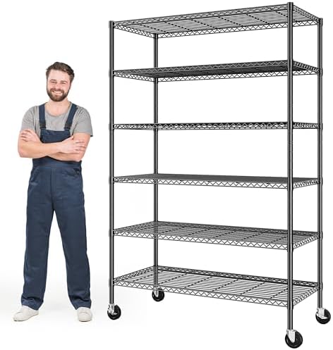 82" H X45 W X18 D Storage Shelves with Wheels, 6 Tier Wire Shelving Adjustable Metal Shelving Pantry Shelves Capacity 1200LBS for Garage Shelving, Pantry, Kitchen, Closet, Commercial, Black