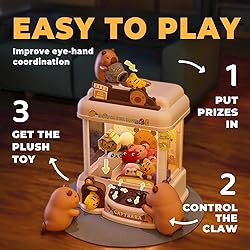 Exclusive Original Capybara Mini Claw Machine, A Healing Home Artwork - Inspired by the capybara, this charming kids claw machine combines playful design with soft pastel hues. It's both a fun claw machine toys for kids & adults and also a collectible home decor, and infusing living rooms and kids' bedrooms with warmth and a touch of artistry. Emotional Interaction and DIY Fun - This claw machine comes with a [Pretty Wish Card],where you can insert sixteen wishes into the gachapon.Randomly grab gachapon with the claw machine to receive encouraging words, which fosters emotional expression in parent-child interaction. It also includes 10 dinosaur egg capsules, 10 plush toys, and 10 animal squishy toys. You can freely fill it with candies or surprise blind boxes to create a personalized children's snack toy vending machine, which is perfect for birthday parties, family gatherings,holiday celebrations, or daily entertainment. Premium Gifting Option: 13.4″large Arcade Game Experience - Equipped with an elegant gift box and a powerful machine, the claw machines replicates the authentic arcade coin-operated experience, with multi-directional joystick for precise maneuvering and a 60-second countdown, kids can experience the thrill of arcade claw machine play right at home. Child-Friendly Design with Safety in Mind - The anti-pinch design perfectly fits little hands, along with the fully enclosed, rounded ABS body and non-slip base, ensuring the stability and safety of the mini claw machine while in use. Its updated three-level volume adjustment protects children's hearing while they play, allowing them to freely and safely explore the charm of the claw machine and enhancing their excitement and sense of achievement in the grabbing process. Worry-Free After-Sales Commitment - We care about every customer's pre-sales inquiries and after-sales product needs. Whether you encounter any doubts about using the product or questions about installation and functionality, our dedicated 24/7 customer service team will respond to your inquiries promptly and efficiently. We look forward to bringing more fun to every family's play area with our products.