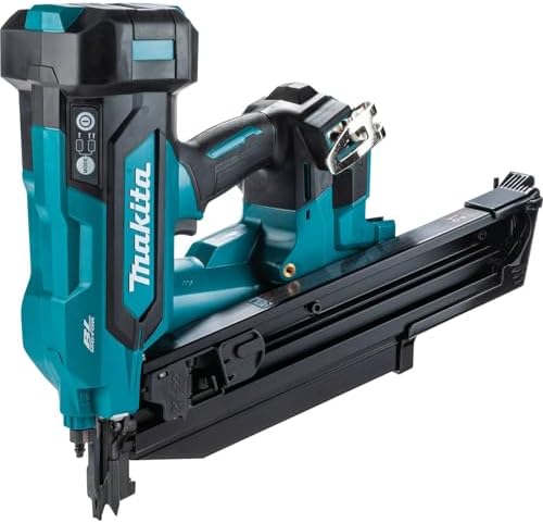 The Makita 18V LXT® 21° Full Round Head 3 1/2" Framing Nailer (XNB03) drives full-round head nails into dense engineered lumber with the power of a pneumatic nailer. The XNB03 can drive up to 1,000 framing nails on a single charge of a 18V LXT® 6.0Ah battery (battery sold separately). The 21° Full Round Head 3 1/2" Framing Nailer features a two-mode selector switch that allows the operator to select sequential nailing or bump fire options. It features an anti-slip nose for controlled nailing at almost any angle. The Framing Nailer features a “tool-less" depth adjustment engineered for more precise flush and countersink nailing. The XNB03 is equipped with an anti-dry fire mechanism engineered to help prevent driving blanks and the Nailer features a rear lock-and-load magazine with 41 nail capacity for maximum efficiency. An accessory for the Nailer is the Extended Capacity Magazine Set (1914P1-6, sold separately) that holds 78 nails for more user productivity. The Framing Nailer drives 21º plastic collated framing nails from 2" to 3-1/2" in length and .113 to .148 in diameter. It weighs only 11.9 lbs. with 18V LXT® battery (battery not included) for reduced operator fatigue. Convenience features include a built-in L.E.D. light that illuminates the work area, a belt hook with a retractable extra-wide tool hook that secures the tool when not in use, and an ergonomically designed handle with a rubberized soft grip that provides increased user comfort.