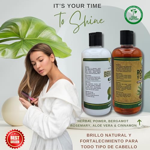 Rosemary, Aloe Vera & Cinnamon Shampoo + Bergamot Conditioner – 2 Pack (16.9 fl oz Each) – Premium Nourishing Formula – Nutre y Revitaliza – Shine & Strength – For All Hair Types Nourish and revitalize your hair with this complete 2-step herbal care system. Our Rosemary, Aloe Vera & Cinnamon Shampoo deeply cleanses while supporting healthy scalp balance and hair strength. Paired with our Bergamot Conditioner, it softens, adds shine, and helps reduce breakage with every use. This sulfate-free set includes two 16.9 fl oz (500 ml) bottles, formulated for all hair types, and ideal for daily use. Gentle, natural, and powerfully effective—your hair’s new favorite duo. For external use only. If irritation occurs, discontinue use. Nutre y revitaliza tu cabello con este set completo de cuidado herbal. Nuestro Shampoo de Romero, Sábila y Canela limpia profundamente mientras fortalece y equilibra el cuero cabelludo. Combinado con el Acondicionador de Bergamota, suaviza, aporta brillo y ayuda a prevenir el quiebre del cabello. Este set libre de sulfatos incluye dos botellas de 500 ml (16.9 fl oz) cada una, aptas para todo tipo de cabello. Uso diario para un cabello visiblemente más sano, suave y fuerte. Solo para uso externo. Suspenda su uso si presenta irritación. Shampoo de Romero, Sábila & Canela + Acondicionador de Bergamota – Set de Cuidado Capilar Nutritivo Premium 16.9 fl oz c/u | Nutre y Revitaliza | Brillo Natural & Fortalecimiento | Para Todo Tipo de Cabello Revive your hair with this powerful botanical duo—a nourishing shampoo made with rosemary (romero), aloe vera (sábila), and cinnamon (canela), paired with a bergamot-infused conditioner for extra softness and shine. This premium hair care set is designed to cleanse, hydrate, and strengthen from root to tip, while leaving your hair soft, revitalized, and naturally radiant. 🌱 Incluye / Includes: 🧴 Shampoo Romero, Sábila & Canela (16.9 fl oz / 500 ml) 💆♀️ Gently cleanses while nourishing and refreshing the scalp. 🧴 Acondicionador de Bergamota (16.9 fl oz / 500 ml) 💚 Smooths and softens hair, adding a natural citrus-infused shine. ✨ Key Benefits | Beneficios con Estilo ✨ 🌿 Herbal Nourishment / Nutrición Herbal Romero revitalizes the scalp, sábila deeply hydrates, and canela promotes balance and vitality. 🍊 Bergamot Brilliance / Brillo Natural de Bergamota The conditioner helps leave your hair soft, manageable, and full of life with a refreshing scent. 💧 Strength & Moisture / Fuerza e Hidratación This combo works to support stronger, silkier strands without weighing down your hair. 🌎 For All Hair Types / Para Todo Tipo de Cabello Perfect for curly, straight, dry, oily, or color-treated hair. 🚫 Free from Sulfates & Harsh Chemicals Formulated to be gentle on your scalp and the planet. 💡 How to Use / Modo de Uso Apply shampoo to wet hair, massage into the scalp, and rinse thoroughly. Follow with the bergamot conditioner, focusing on mid-length to ends. Leave on for 1–3 minutes, then rinse. Use regularly for best results. 💖 Shampoo + Acondicionador Nutritivo – Un dúo natural para transformar tu cabello con cada lavada. Nourish. Revitalize. Shine Naturally. 🌿✨