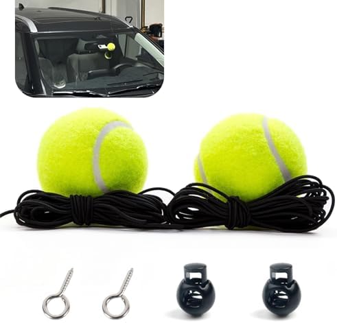 - Package Contents: The package includes 2 garage parking tennis ball stoppers with lanyards, 2 adjustable clips, and 2 screws. The surface of the tennis ball is soft and elastic, preventing scratches on the windshield and caring for your car with great attention.