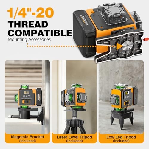 - 【Adjustable Height Tripod】The laser level with tripod features a versatile tripod that can be adjusted to three heights—17 inches, 24 inches, and 37.5 inches—allowing you to customize it to your specific needs for optimal convenience and accuracy.