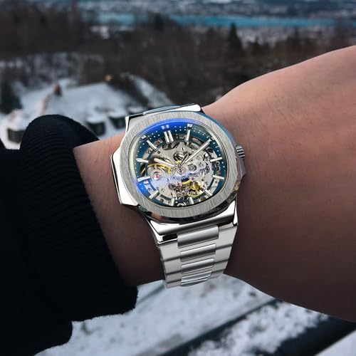 FORSINING Men's Transparent Mechanical Skeleton Watch Automatic Mechanical Mens Watches