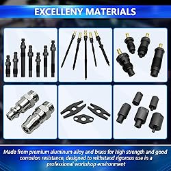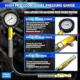 🚕【Compression and Leak Test Kit for Diesel/Petrol Engines】This KTTOOL Compression and leak test kit is a multifunctional comprehensive diagnostic tool with 46PCS ultra-high configuration, which includes a diesel pressure gauge to measure cylinder compression value, a dual-meter leak detector to display pressure and leakage rate, and various types of glow plug, injectors and spark plug adapters, which can easily help you test the compression and leakage of diesel and gasoline vehicles 💡【Wide Compatibility】46-piece engine compression tester kit is suitable for most car, truck, bus, agricultural and marine engines, designed for modern gasoline and diesel engines, including HDi, TDCi, Pumpe Duse (PD) and old diesel and gasoline engines. Compatible with Alfa/BMW/Ford/Chrysler, compatible with Mercedes-Benz/Nissan/Toyota/Daewoo, etc., with a wide range of applications, ensuring a thorough diagnosis of various vehicles 🔎【High-precision dual-scale diesel pressure gauge】Compression tester kit is equipped with a compression gauge with a rubber protective pad that reads in psi and bar, which can accurately measure the cylinder compression value up to 50 bar (725 psi). In addition, the compression gauge is equipped with a pressure relief valve to reduce the risk of fuel injection by releasing pressure before disconnecting, ensuring safety during operation ✅【Multi-Function Dual Gauge Leak Down Tester Kit】In addition to the compression gauge, cylinder leak down tester kit also comes with a dual gauge that displays pressure and leak rate, which is used to identify engine cylinder leaks and detect common engine failure problems such as cylinder head cracks, worn piston rings, blown head gaskets, worn valves, etc. By measuring and observing the amount of leakage displayed on the cylinder leakage gauge, it helps to determine the source of the leak 🚚【Durable Material】Compression tester automotive is made of high-quality aluminum alloy as well as brass, which is high in strength and has excellent corrosion resistance, while the rubber hose can withstand high pressure and high temperature, ensuring your safe use. In addition, the gauges are also protected with rubber bumpers for added durability 🛒【Efficient Design】Engine compression tester kit comes with straight and angled quick connectors for quick and easy connection, minimizing downtime and increasing efficiency and productivity. In addition, compression tester automotive comes with an extra-long 9.8-inch extension tube and 18-inch extension hose to help you achieve long-distance connection and testing 🎁【Heavy-Duty Blow-Molded Tool Box, Easy to Store/Carry】Engine cylinder compression tester kit comes with a thickened heavy-duty blow-molded tool box, and the built-in foam insert can hold all the tools in place for safe storage. After each use, the tools can be neatly and orderly arranged in the box to prevent loss and confusion, and easy to carry 🌹【Excellent Service】:If you have any pre-sales or after-sales questions, please contact us. We provide 24-hour professional service. We will wholeheartedly assist you and fully protect your consumer rights to ensure your satisfaction