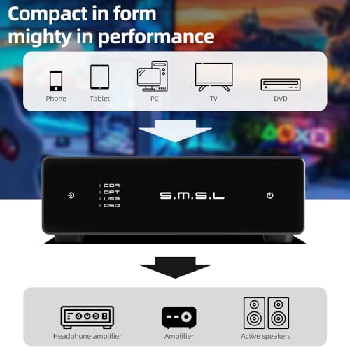 SMSL D1 Audio DAC | Fiber/Coaxial/USB Input | RCA Output | ROHM BD34352EKV Chip | 768kHz/32-bit Decoding | Compatible with Computers,Mobile Phones,TV,Earamplifiers,Power Amplifiers,Active Speakers