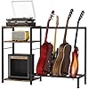 Guitar Stand for 4 Guitars, Adjustable Multiple Guitars Rack with Soft-Padded Protector for Acoustic, Electric, Bass & Ukulele, Guitar Display Stand with 3-tier Shelves for Amp & Vinyl Records