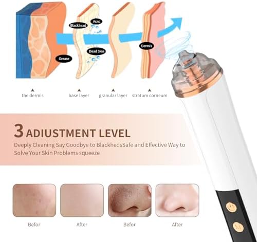 - 【Newest Technology Blackhead Vacuum】– Super powerful blackhead remover can be safely used on the face directly It effectively removes blackheads, whiteheads, dead skin, acne, excess grease, and makeup residues. Achieve improved blood circulation, enhanced skin elasticity, and reduced wrinkles without harming your skin.