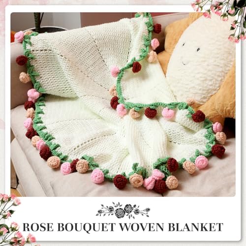- 3D Rose Bouquet Design: our bouquet blanket is designed with classic crochet patterns and rose flower styles; This floral throw blanket transforms from a cozy blanket to a beautiful bouquet when rolled up, making rose blanket a unique and decorative addition to any space
