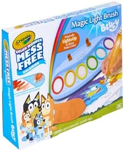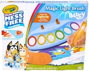 • BLUEY COLOR WONDER PAINT SET: This set features a Magic Light Brush Unit, 6 Color Wonder Paints, and 18 Bluey-themed Color Wonder Paper Sheets.