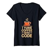 Womens I Turn Coffee Into Code Cool Developer Design for Programmer V-Neck T-Shirt
