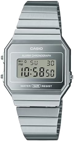 Casio Vintage Retro Modern Silver Watch A700WEV-7AVT Blending timeless style with modern minimalism, the A700WEV-7AVT showcases a sleek, monochromatic color scheme paired with a clean, streamlined dial. This combination creates a refined aesthetic that exudes pure vintage sophistication while remaining effortlessly contemporary. Designed with comfort in mind, the ultra-slim case provides a lightweight and barely-there feel on the wrist, making it ideal for all-day wear. The watch’s understated elegance and classic silver-tone finish make it a versatile accessory, perfect for elevating both casual and formal looks.