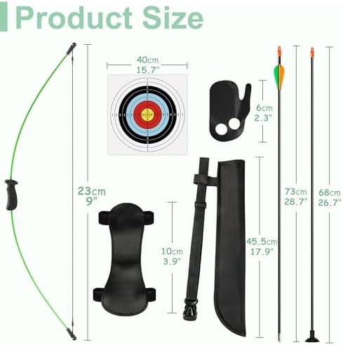 - Complete Protective Gear Set: Comes equipped with a quiver, finger guard, arm guard, and 4 target papers for safer and more engaging archery practice