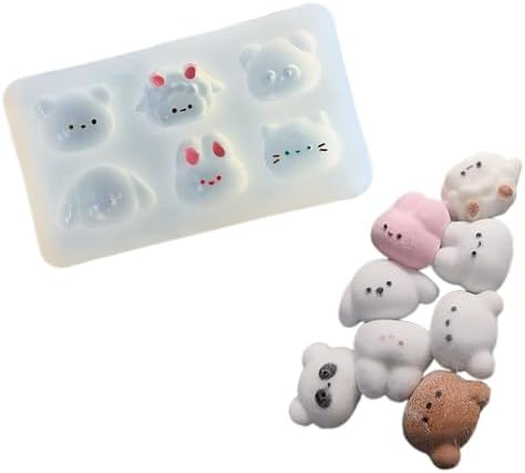 - DESIGN: 6-cavity silicone taba squishy mold featuring adorable animal character shapes (cat, dog, panda, bear, rabbit, sheep), perfect for creating cute squishy and decorative items