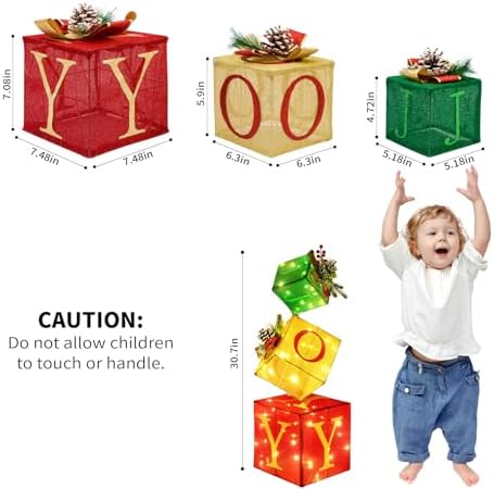 - Easy to Assemble: The lighted gift boxes can be stacked up to 2.6Ft tall. Each box has a hidden round hole and rectangular slot—just match the shapes to stack them securely. (Note: The slots are discreetly designed, so check carefully!)