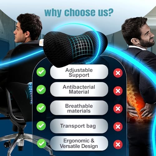 - 🧠 Premium Memory Foam Comfort – Designed with high-density memory foam, this pillow molds to your back, offering lasting support for low back pain relief throughout the day.