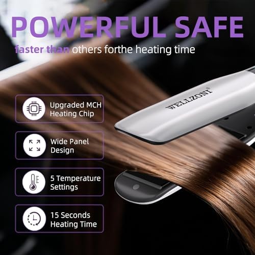 1.4 inch Flat Iron Hair Straightener - 15s Fast, 37 Adjustable Temp 122-450°F for All Hair Types, 110-240V Global Travel Wide Plate Flat Iron Ionic Ceramic Technology & Auto Shut-Off