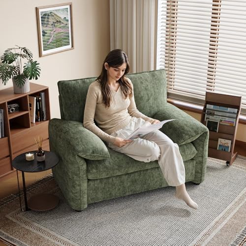 ONBRILL Oversized Accent Chair, 42 Inch Chenille Fabric Armchair, Comfy Single Sofa Chair with Padded Arms, Pocket Spring Cushion, Modern Reading Chair for Living Room, Bedroom, Green