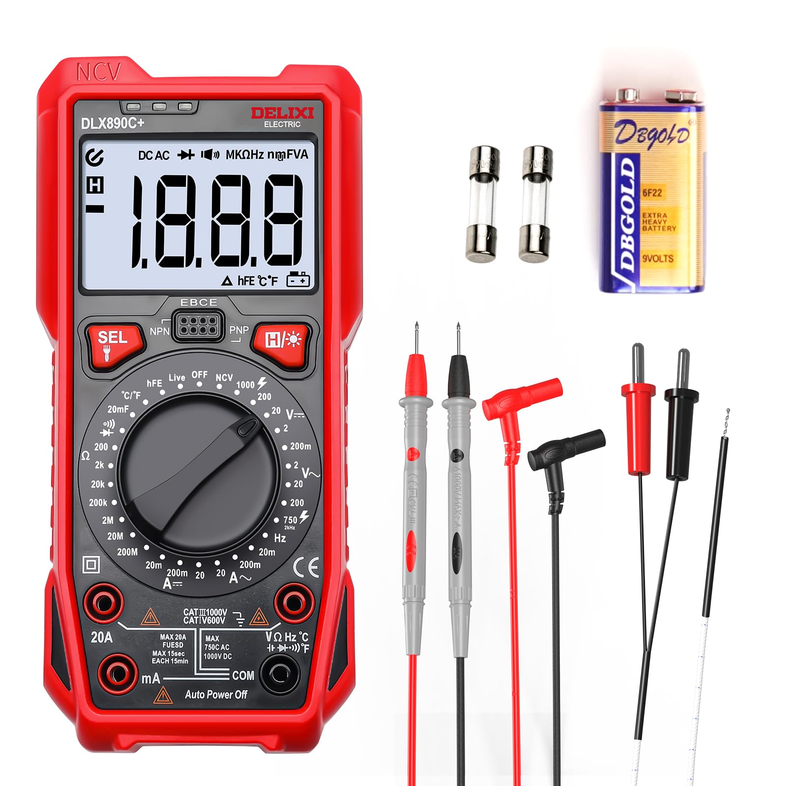 DELIXI Digital Multimeter, Manual Range Tester with High Accuracy Measures Voltage, Current, Resistance, Capacitance, NCV, Dual Ceramic Fuses Included