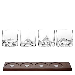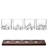 COMPLETE TASTING BUNDLE: Set of 4 Peaks Heavy Crystal Whiskey Glasses (10 oz, 1lb each) and LIITON Whiskey Flight Coaster Set. CHILL WITHOUT DILUTION: Thick, freezable glasses keep drinks cold longer without watering them down — no ice needed. MOUNTAIN INSPIRED DESIGN: Glasses sculpted with iconic peaks for a dramatic look and bold, weighted feel. SERVE IN STYLE: Flight coasters double as a tasting board for entertaining or sampling multiple spirits. PREMIUM GIFT FOR MEN: A perfect gift for whiskey fans, dads, or hosts — great for holidays, birthdays, and special occasions.
