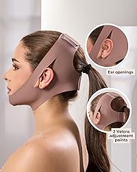 Customized Fit: Featuring two Velcro adjustment points, this double chin eliminator for women ensures a personalized fit, enhancing comfort and effectiveness for a flawless face lift. The chin lifting mask adapts to your unique contours, providing a good fit for the best results. It is very important that you check the size chart, measure your face, and choose the correct size. This is crucial to ensure a good experience with the product. Support: Designed as a chin strap for double chin for women, this product provides medium compression, effectively supporting your facial structure. The double chin support in maintaining a firm appearance, while the face lifting mask offers consistent pressure for a noticeable lift. Design: This double chin strap face slimming solution doubles as a face slimmer, targeting sagging skin. The face lifting strap serves as a chin lipo compression garment, ensuring a continuous lifting effect, while the chin strap for snoring provides nighttime comfort. Effective Reduction: Our chin strap for sleeping acts as a double chin reducer, promoting a slender profile. The anti snore chin strap design facilitates restful sleep, while the chin compression garment works tirelessly to redefine and sculpt, offering a comprehensive double chin remover solution. Comprehensive Care: The face lift mask is an essential face slimmer for women, combining advanced technology with comfort. This double chin strap offers a non-invasive solution, while the face lifting strap supports continuous improvement, making it an ideal choice for those seeking a refined look. Remember to measure your face, check the size chart, and choose the correct size.