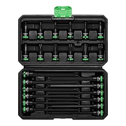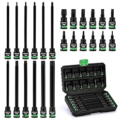 Set Includes: 12pcs 3/8" Dr. Extra Long Torx Bit Sockets: T10, T15, T20, T25, T27, T30, T40, T45, T47, T50, T55, T60; 12pcs 3/8" Dr.Torx Bit Sockets: T10, T15, T20, T25, T27, T30, T40, T45, T47, T50, T55, T60. Extra Long Reach Design: The extra long bits provide superior access to deeply recessed and hard-to-reach allen screws and bolts, making stubborn fasteners easier to tackle. Durable CR-V & S2 Construction: Forged from premium CR-V (Chrome Vanadium) and S2 Alloy Steel, these sockets offer exceptional strength, wear resistance, and torque performance, preventing stripping and rounding. Universal 3/8" Drive Compatibility: Features a standard 3/8-Inch Drive that fits 3/8" ratchets, breakers, and torque wrenches, making it a versatile addition to any mechanic's tool set. It comes with a sturdy and convenient storage case. Keep each piece in the proper position. All EMENTOL products meet or exceed ANSI performance standards.
