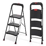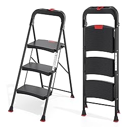 - TOOLF 3 Step Ladder, Heavy Duty Step Stool with Tool Tray and Anti-Slip Wide Pedal, Portable Steel Folding Ladder for Home, Kitchen, 800 Lbs Capacity for Home & Industry, Black