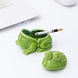 Frog Ashtray with Lid for Cigarette Ceramic Green Windproof Ash Tray for Home Office Tabletop Outside Patio Outdoor