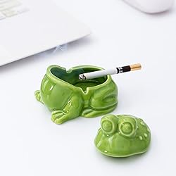 You Will Get: Green Ceramic Ashtray size 3.94"L x 3.3"W x 3.32"H Windproof Design: The ashtray has lid isolate the smell of cigarette butts Prevent soot from scattering keep the table clean Multifunctional: Frog ashtray not just as an ashtray, it can be key holder used to store your jewelry or small objects on the desk Material: Made of ceramic smooth and sturdy, it does not produce any odor during use Multiple Occasions: This ashtray is a great gift for any smokers, suitable for family, house, bar, cafe, hotel, party
