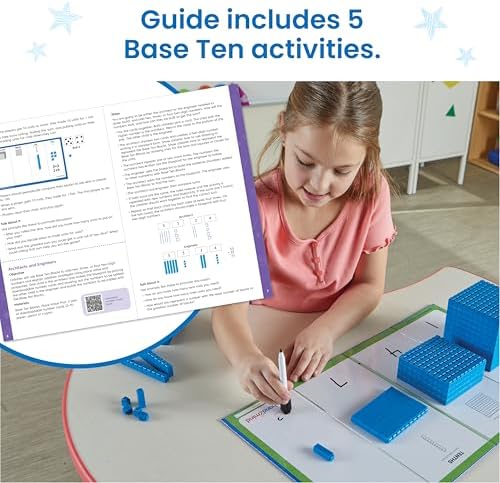 A hands-on way to learn place value, number concepts, and more! The included Plastic Base Ten Blocks provide visual representation of place value. Base Ten Blocks provide a proportional model of the base ten number system. They give children ways to physically represent the concepts of place value, addition, subtraction, multiplication, and division. By building numbers with Base Ten Blocks, children ease into the concept of regrouping and can see the logical development of each operation. Write-on/wipe-off Place Value Mat is double-sided for whole number activities on one side and decimal practice on another. Includes 131 Interlox Base Ten Blocks (1 Cube, 10 Flats, 20 Rods, 100 Units), 1 Dry-Erase Marker, 1 Place Value Mat, 1 Activity Guide. For over 50 years, hand2mind has encouraged hands-on learning and discovery, driving deeper understanding and helping children unlock their full potential. hand2mind specializes in math manipulatives designed to help students learn by doing. Particularly with place value, hand2mind supplies place value manipulatives like Base Ten Blocks and Place Value Discs to help kids comprehend thousands, hundreds, decimals and more! From early math to Middle School math, hand2mind has you covered with products designed to enhance learning in the classroom and the world around us. Through hands-on exploration and discovery we strive to find new ways to encourage students in math practice, literacy activities, STEM education and more!