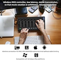【Wireless controller】 Offers wireless connection capabilities, low latency, stable transmission, so that music creation is unfettered, release inspiration, your studio, anywhere. 【Portable Controller】 Built-in rechargeable battery, 16 hours working time, rechargeable and connected mode, You can easily throw this ultra-portable MIDI controller into almost any bag and take it with you to the studio, coffee shop, or hotel to create music. 【Smart Controller】 Designed to work seamlessly with leading DAWs, eliminating the need for complex manual MIDI mapping and ensuring a smooth, intuitive workflow. Compatible with various operating systems, ensuring a versatile and adaptable experience for users across different platforms. 【Easy Controller】 Soft backlit silicone button design, quiet operation and comfortable touch, so you can focus on the inspiration of music creation without distractions. Eight sets of 360-degree rotary encoders, which can be customized according to individual needs, making fine adjustment a breeze. 【customized Controller】 Each control unit can be customized to create a unique and perfectly fit music production experience that makes your music unique. Each set of faders has an indicator light to provide you with immediate visual feedback.