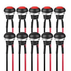 Momentary Function– This SPST 2-pin push button switch activates only while pressed—press and hold to turn on, release to turn off. Waterproof & Durable – These 2PIN Push button switch made of flame-retardant plastic with a waterproof design, ensuring safe and stable performance in tough environments. Easy Installation – Each switch comes with pre-soldered 20AWG wires. input voltage is 3A 125V/1A 250V AC. Fits standard 12mm (0.5") mounting holes. Wide Compatibility –Mini Round Switch ideal for automotive, marine, motorcycle mods, industrial equipment, and household appliances like water dispensers and coffee machines. Value Pack – Includes 10 push button switches (5 red & 5 black), ideal for DIY electronics, replacements, or custom projects requiring multiple switches