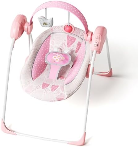 Portable Baby Swing, Pink Electric Infant Swing with 5 Speed Levels, 6 Songs & Timer – Battery-Powered Only (No Batteries Included) Pink and White