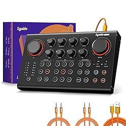 [Wireless Freedom, Limitless Creativity] Break free from cables—this BT-enabled MIDI controller pad lets you wirelessly connect to your Mac, PC, or smart device. With USB and BT MIDI dual connectivity, you can create music anytime, anywhere without being tethered to your setup [Powered for Excellent Portability] Built-in rechargeable battery supports hours of mobile beat-making, making it perfect for studio sessions, travel gigs, or outdoor jams. No external power supply needed—just grab and go [Pro-Grade Sound with DSP & Phantom Power] Built-in high performance digital DSP chip, ultra-low distortion and high SNR ensure clean, studio-quality audio. The powerful preamp with 3-level noise reduction drives even pro condenser mics via 48V phantom power—perfect for podcasting, streaming, voice-overs, and music production [Total Dynamic Control at Your Fingertips] Create and trigger custom effects with 9 programmable pads (up to 15 seconds each). Includes 6 reverb modes, 6 voice effects (robot, child, boy, girl, etc.), and built-in DJ sounds—all ready for real-time recording and one-tap play. Personalize your stream, wow your audience, and build your signature sound effortlessly [Non-Stop Creativity with Ultra-Long Battery Life] Built-in 3000mAh battery delivers over 8 hours of heavy use—and up to 10 hours in standard mode. Unlike typical 1800–2000mAh models, Synido Live 100 keeps you powered through long sessions. Supports charging while in use via USB-C, so your creativity never gets interrupted—indoors or out