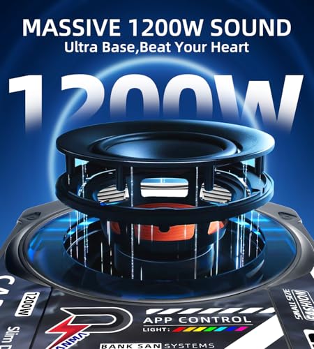 1200W 10" Slim Underseat Car Subwoofer and Amp Package, Car/Truck Sub Built in Amplifier for Outstanding Heat Dissipation, with Ambient Light, Loud Stereo Sound, Deep Bass Perfect