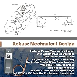 [Wide Operating Range] Designed for versatile environments, this controller operates between -30°F to 90°F (-34°C to 32°C) , allowing precise temperature regulation for diverse applications [Replacement Part Compatibility] Compatible with part numbers W1609-101 and TH-1609, ensuring direct fitment for systems requiring these specific specifications. Verify your existing part number before purchase for proper compatibility [Robust Mechanical Design] Features manual temperature control design with durable alloy steel construction for long-term reliability. Analog display provides clear readings. Standard installation utilizes a 3/8“ x 5 3/4” thermowell [Dual-Scale Precision] Equipped with a dual-probe temperature dial supporting both Fahrenheit and Celsius measurements, providing intuitive reading options for global use. Meeting strict safety and performance standards [Customer Support Commitment] Our team is available to assist with product inquiries, fitment questions, or operational guidance. We prioritize quality craftsmanship and aim to deliver a seamless experience for every customer