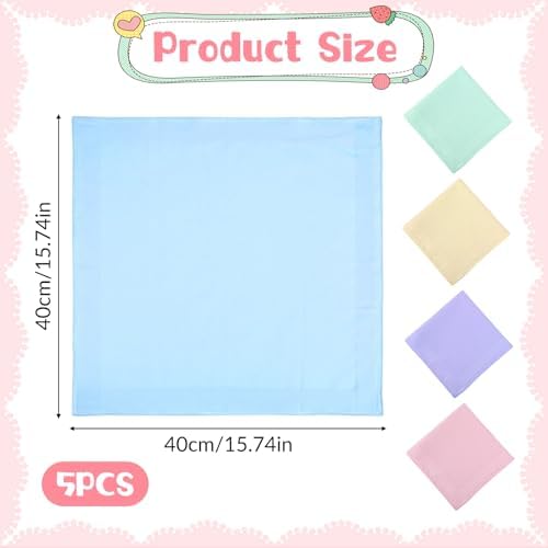 Candy Color Cotton Handkerchiefs for Women, 5 PCS Soft Ladies Handkerchiefs Solid Color Wedding Handkerchief Pocket Square Towel Hankies for Women 's Tea Party, Gifting, Weddings, Home Decor