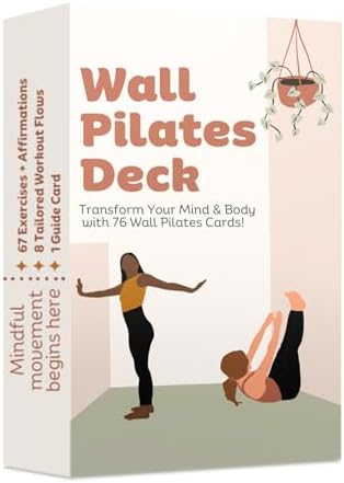Wall Pilates Workout Cards for Women – 76 Large Hand-Drawn Exercises with Step-by-Step Guides & Mindful Affirmations – Unique Home Pilates Gift Deck