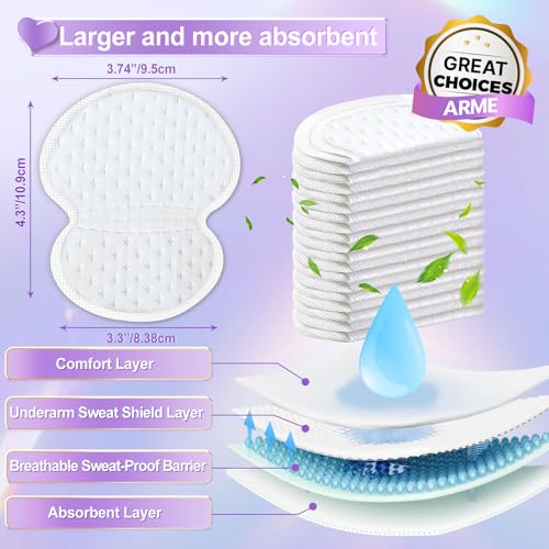 Arme 180 Pcs Armpit Sweat Pads, Underarm Sweat Pads for Women, Disposable Antiperspirant Sweat Pads for Under Arms, Arm Pit Sweat Guards, Invisible Sweat Free Armpit Protection for Hyperhidrosis