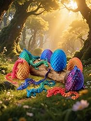 - 3D Printed Dragon Egg with Poseable Dragon — Interactive Ornament-Unique and Mysterious Desktop Pets