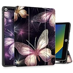 Mektron Designed Printed iPad 10.2" Case 9th Gen (2021)/ 8th Gen (2020)/ 7th Gen (2019) with Pencil Holder, Slim Protective Case with Soft TPU Back, Auto Wake/Sleep for iPad 10.2 Inch, Butterfly