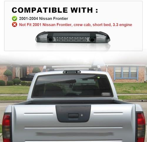 - Vehicle Suitability - Rear Cargo Light Compatible with Compatible with 2001 2002 2003 2004 Nissan Frontier(No Compatible with 2001 Nissan Frontier, crew cab, short bed, 3.3 engine)