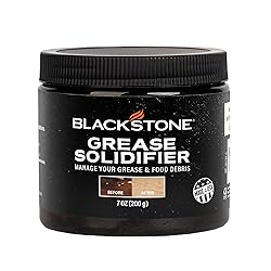 - Make cleanup quick and easy with Blackstone Grease Solidifier. This unique grease solidifier is designed to manage grease and food debris faster than waiting for it to solidify naturally. Simply add 1-2 scoops of solidifier per 1 cup of grease into the grease cup, stir the solidifier into the hot grease, allow the grease to cool, then properly dispose of the cooled grease and debris. This efficient process conveniently solidifies the grease for faster disposal. The 7 oz container includes a scoop for easy measuring and about 18 scoops of solidifier. Add the Blackstone Grease Solidifier to your cleaning kit so you can clean more efficiently, giving you more time to spend with family and friends.