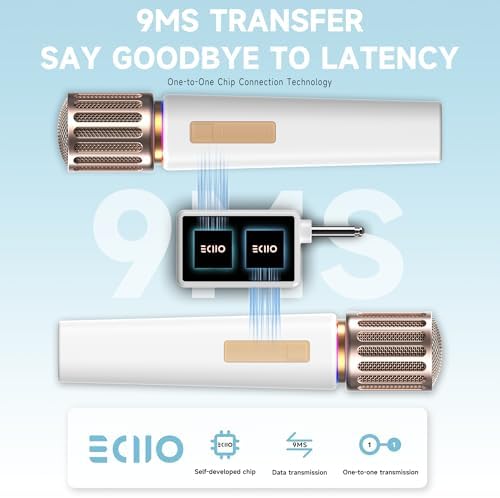 - [2025 Upgraded Connection Technology]--Powered by dual intelligent high-speed processing chips, our wireless microphones achieve true one-to-one signal processing reception, ensuring ultra-stable and faster connectivity. Breakthrough 9ms ultra-low latency surpasses traditional 2.4GHz transmission speeds, delivering a lag-free singing experience.