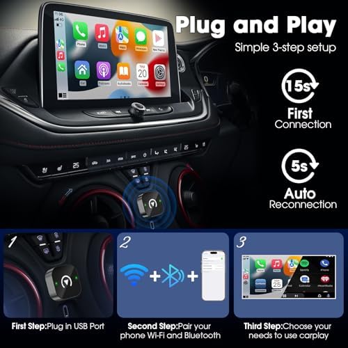 - 【Dual-Band Premium Performance】Equipped with an advanced dual-band chipset (2.4GHz + 5GHz), it can ensure enhanced stability and near zero latency. Experience lightning fast and smooth carPlay performance for seamless music streaming, navigation, and hands-free calling.