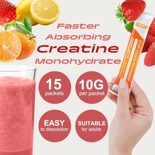 - 【Powerful Formula】 Per serving (10g) of CANLIST creatine monohydrate powder contains 4500mg of creatine monohydrate and 5000mg of BCAA, which helps maintain nutritional balance in the body, prevents protein and muscle breakdown, and achieves peak athletic performance.